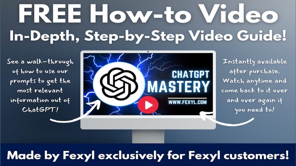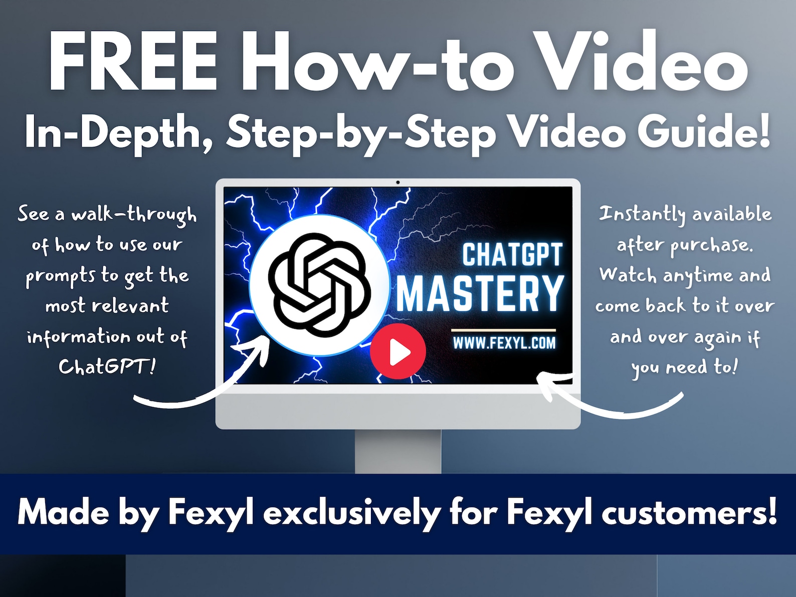 Unlock the true potential of ChatGPT with our in-depth, step-by-step video guide – a must-have for anyone serious about getting the most out of their ChatGPT experience. For a limited time only, we're offering this incredible resource absolutely FREE with every purchase of the ChatGPT Handbook!